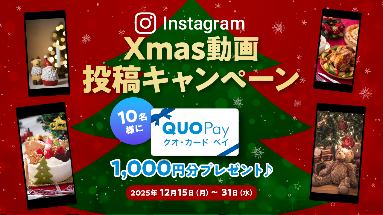 クリスマス気分をさらに盛り上げるキャンペーンのお知らせです!Instagram投稿キャンペーンを開催します!「クリスマスにまつわるリール動画」+「レッスンの感想をキャプションに記載」して投稿いただくと、抽選で10名様に QUOカードPay 1,000円分 をプレゼント!さらに、Kimini公式Instagramアカウントのストーリーにて当選者の投稿をご紹介させていただきます。