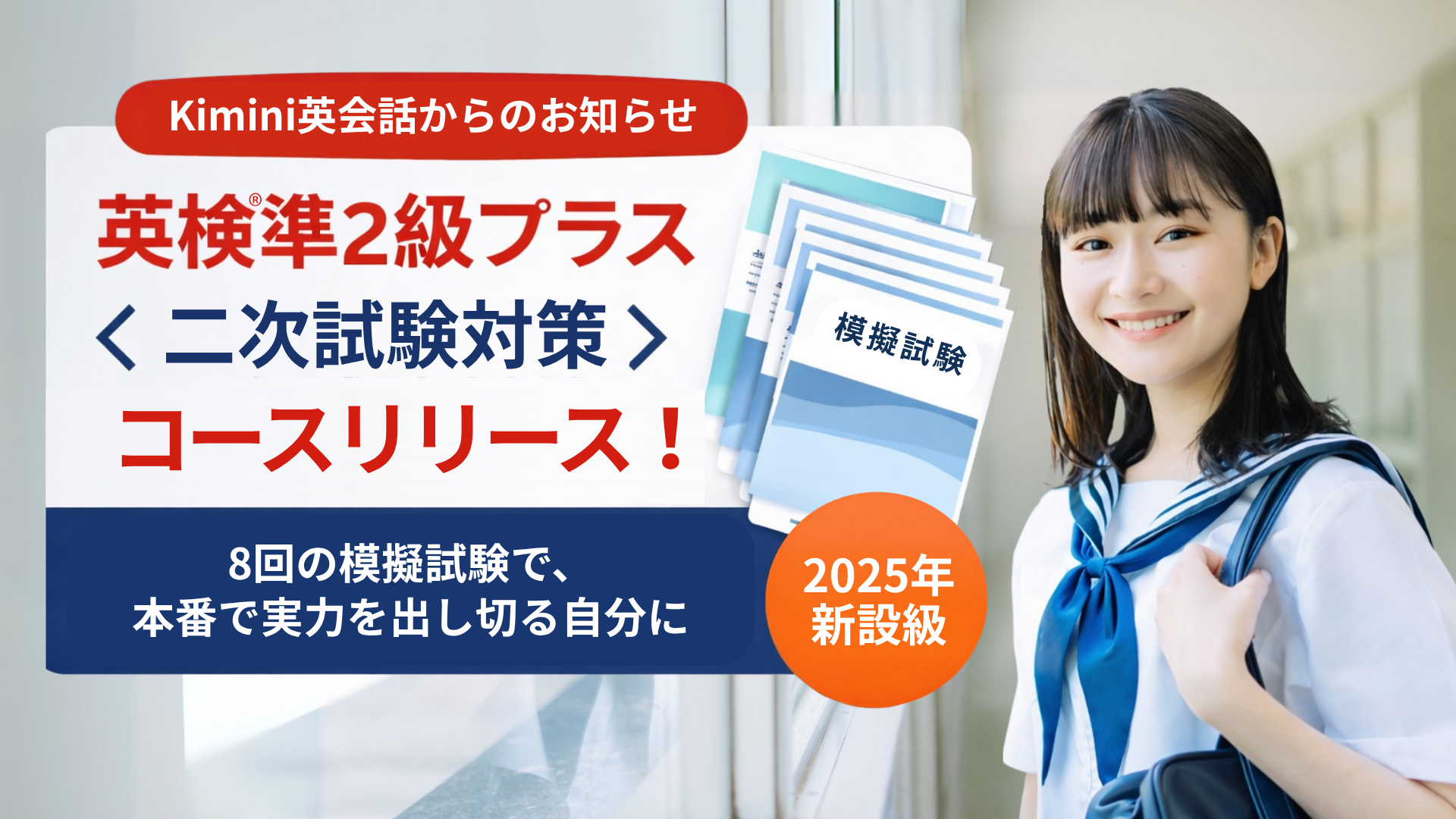このたび、お客様からのご要望にお応えし、英検®二次試験対策コース「英検®準2級プラス<二次試験対策>」を新たにリリースいたしました。本コースでは、準2級プラスの二次試験を想定した模擬試験を受けることができます。全8回の模擬試験を通して、二次試験の形式や流れに慣れることで、自信を持って本番の試験に臨めます。